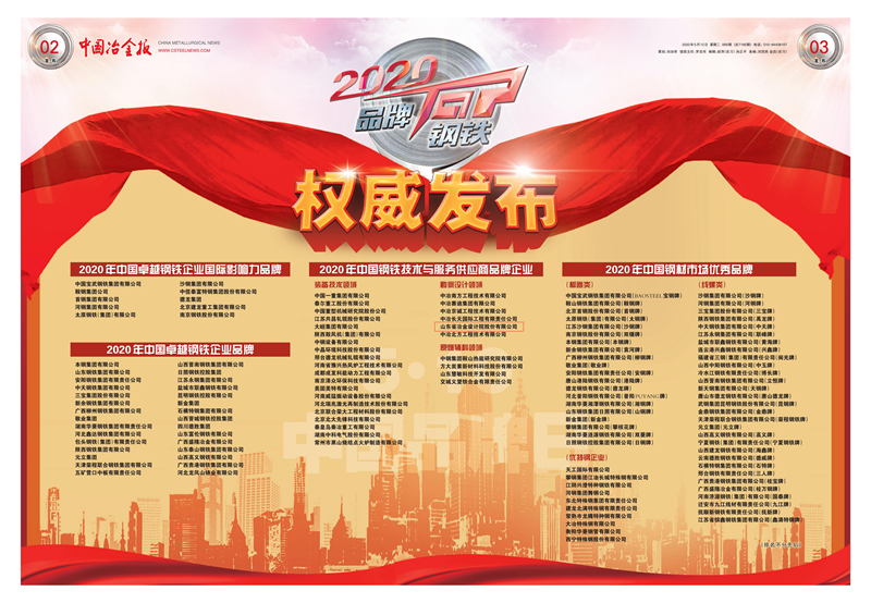 中國鋼鐵品牌榜是中國冶金報社于2017年首次發(fā)布、連續(xù)第四年組織的品牌評選活動。此次評選是根據(jù)上一年度企業(yè)經(jīng)營情況、品牌建設(shè)投入情況、微信投票、業(yè)內(nèi)專家意見等作出的綜合評定,其關(guān)注度已遠超2017年水平,是鋼鐵行業(yè)最權(quán)威的品牌排行之一。此次評選活動也是我公司首次入選 “中國鋼鐵技術(shù)與服務(wù)供應(yīng)商品牌企業(yè)”。 標(biāo)志著我公司在中國鋼鐵冶建第一梯隊的地位越來越得到了業(yè)內(nèi)和主流媒體的廣泛認可。