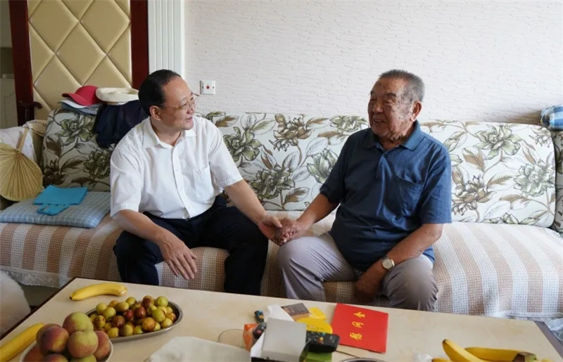 中國人民抗日戰(zhàn)爭暨世界反法西斯戰(zhàn)爭勝利75周年紀(jì)念日之際,山東省國資委領(lǐng)導(dǎo)分別慰問了省管企業(yè)的抗戰(zhàn)離休干部,感謝他們?yōu)橹袊嗣窨谷諔?zhàn)爭勝利做出的重要貢獻(xiàn)。