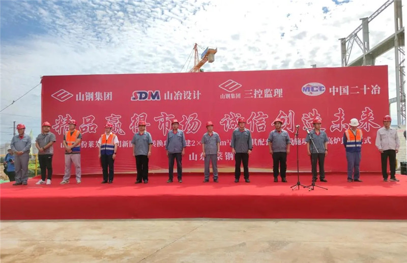 2020年8月25日,由山冶設(shè)計(jì)總承包的山鋼股份萊蕪分公司1#3800m3高爐工程舉行爐殼封頂儀式。山鋼股份萊蕪分公司新舊動(dòng)能轉(zhuǎn)換項(xiàng)目工程指揮部副總指揮李綱、副經(jīng)理田慶元,煉鐵廠(chǎng)經(jīng)理、高爐工程項(xiàng)目經(jīng)理部經(jīng)理張明,新舊動(dòng)能轉(zhuǎn)換項(xiàng)目工程指揮部高爐工程項(xiàng)目經(jīng)理部常務(wù)副經(jīng)理賈友劍及施工、監(jiān)理等相關(guān)單位領(lǐng)導(dǎo)出席了儀式,山東省冶金設(shè)計(jì)院股份有限公司黨委書(shū)記谷卓奇代表總承包單位發(fā)表講話(huà)。