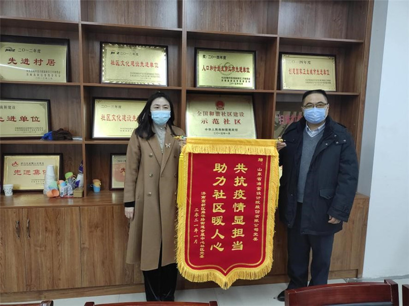 會談結(jié)束后,社區(qū)黨委向公司黨委贈送了錦旗。