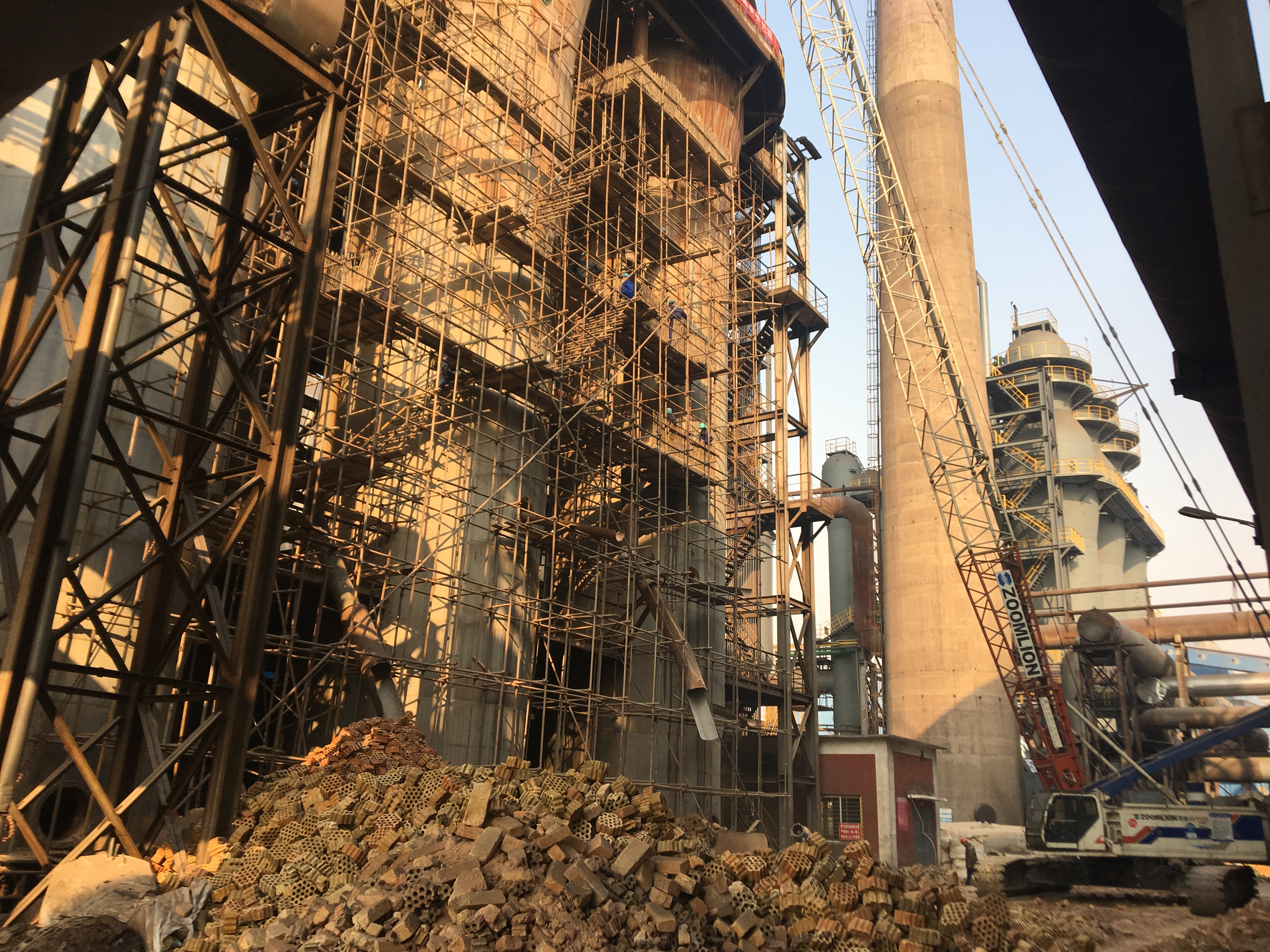 此項目自2019年1月11日停爐開始改造,先拆除,后新建,現場復雜,工期緊,工程量大。先后拆除耐材3000余噸,鋼結構設備拆除500噸,新砌筑耐材3400噸,新建鋼結構設備600噸,同時電氣改造,熱風爐自動化程序設計。針對春節工人回家過年、當地環保施工管控嚴、耐材供應不及時等不利影響,項目部積極克服,不斷優化調整方案將影響降到最低,條件具備后,采取晝夜不停分層分班作業施工,安全順利完成了既定節點,得到了甲方業主的認可!