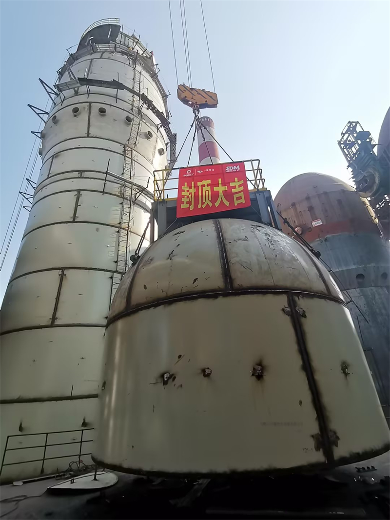 由山冶設(shè)計EPC總承包的衢州元立公司新建1號1280m3高爐配套兩座熱風(fēng)爐于2025年1月24日順利封頂,為后續(xù)耐材砌筑施工創(chuàng)造了有利條件。本項目涉及原有系統(tǒng)拆除、爐殼拼裝場地非常狹小、爐殼吊裝要跨越煤氣管廊及氧氣氮氣等各種氣體介質(zhì)管廊等,給新建熱風(fēng)爐安裝施工帶來了諸多困難。山冶設(shè)計元立高爐項目部精心組織策劃、積極和業(yè)主溝通協(xié)調(diào)、多次組織專題會對施工機械、施工方案等進行研討,利用廠區(qū)道路和3號熱風(fēng)爐場地作為爐殼拼裝場地先行安裝1號2號熱風(fēng)爐爐殼,待封頂后再進行3號熱風(fēng)爐爐殼的安裝。三座熱風(fēng)爐可保證新建高爐順利投產(chǎn),4號熱風(fēng)爐的安裝施工需等待原有配電室等拆除完成后再進行樁基、基礎(chǔ)和爐殼的安裝施工。