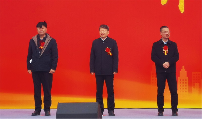 開工當日,戈壁灘上紅旗招展,春風漫卷,參建隊伍列隊整齊,秩序井然。