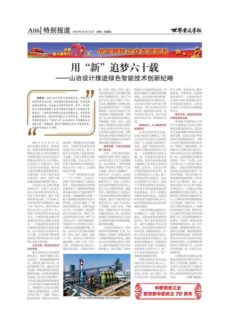 用“新”追夢六十載——山東省冶金設(shè)計院股份有限公司推進綠色智能技術(shù)創(chuàng)新戰(zhàn)略