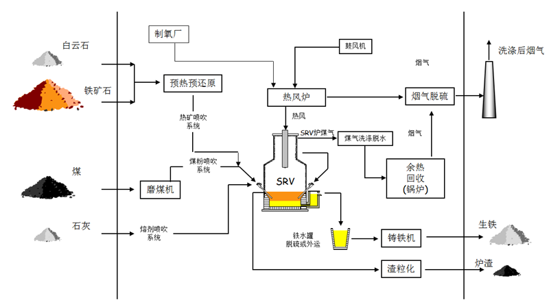 由于不需要使用焦炭、燒結(jié)礦或球團爐料,可使用更便宜的鐵礦粉和非焦煤,并且可直接噴吹工廠廢料,因此可取消燒結(jié)和焦化廠,煉鐵成本較低。
